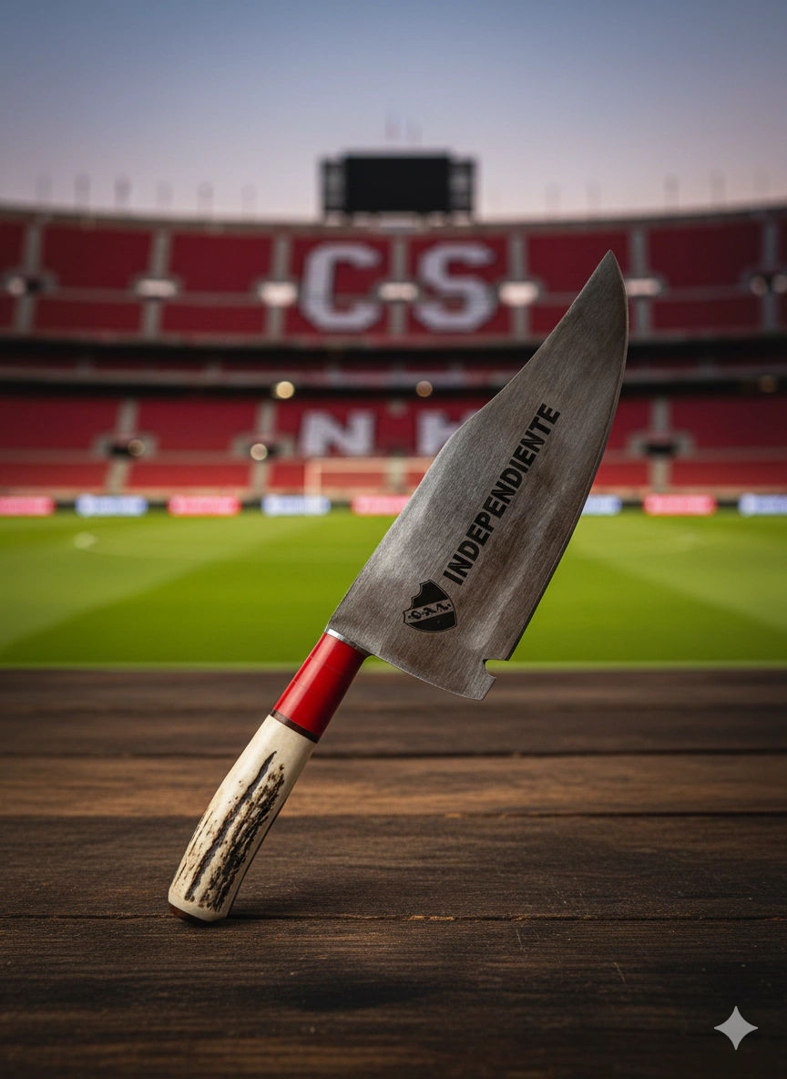 ¿Querés ser el asador más hincha y filoso del barrio? ¡Esta Cuchilla Parrillera Inoxidable de INDEPENDIENTE estilo Bowie es tu aliada ideal!