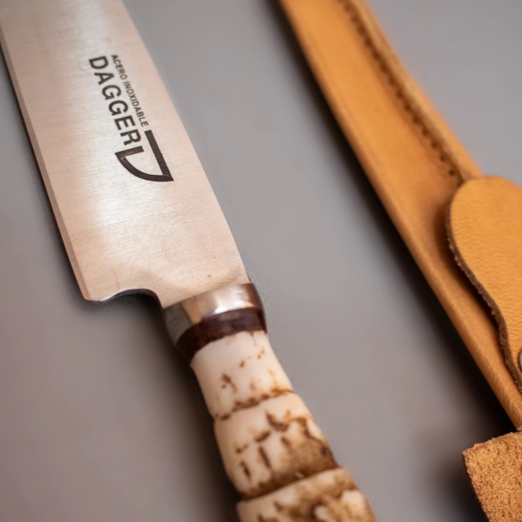 Este cuchillo está diseñado para quienes valoran la tradición y la calidad en cada asado. Su hoja inoxidable garantiza durabilidad y fácil mantenimiento, mientras que la vaina de cuero aporta un toque de elegancia y practicidad.