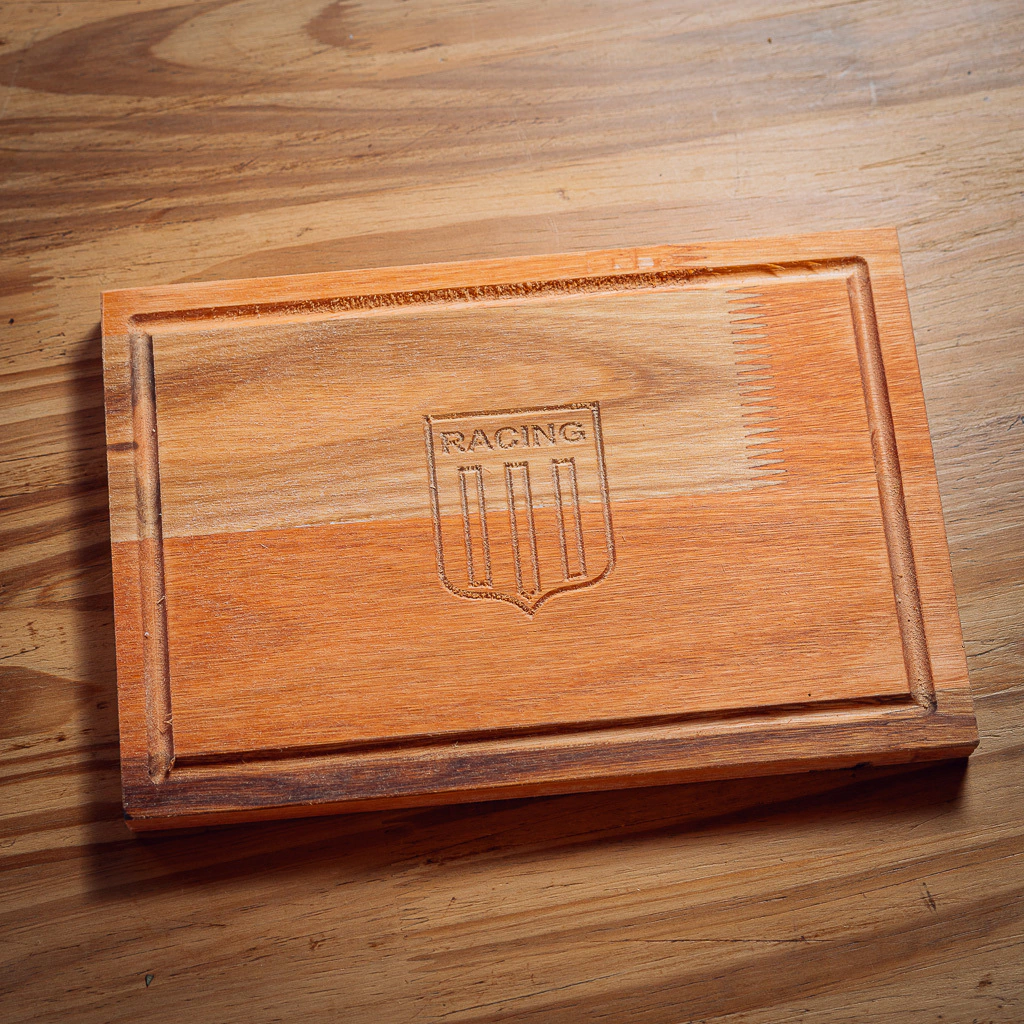 ¡Llegó el Platito Asado Racing Club! Este platito es ideal para todos los verdaderos hinchas de la Academia. Fabricado en madera de eucalipto, este material es conocido por su resistencia y durabilidad, con unas dimensiones perfectas de 30x20x2 cm.