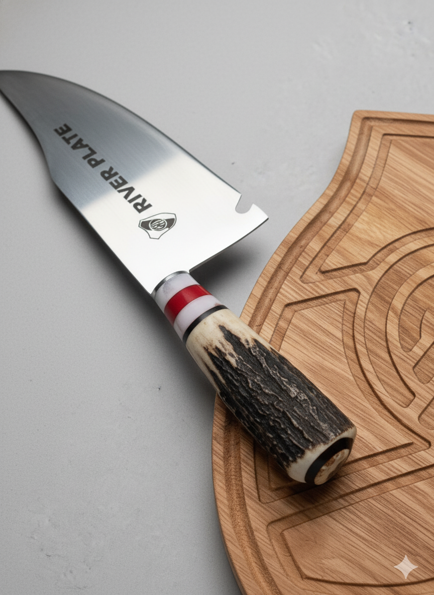 Disfrutá del asado con la elegancia y la pasión de River Plate en cada corte. Este exclusivo combo incluye una tabla de asado oficial con el escudo de River Plate y una cuchilla parrillera estilo Bowie, diseñada para los verdaderos fanáticos del asado y del Millonario.