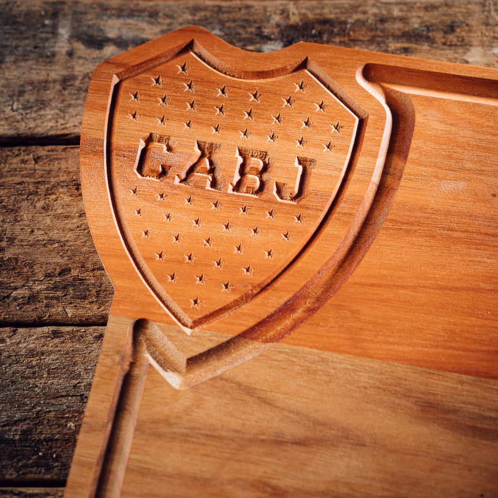 🔥 ¡Prepárate para el asado del año! Esta Tabla Asador con escudo tallado es el complemento perfecto para todos los hinchas y amantes de la parrilla. Con unas dimensiones de 50x30x2 cm, es ideal para preparar y servir tus cortes de carne como un verdadero profesional.
