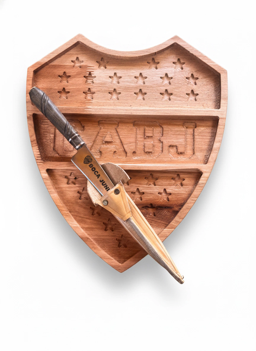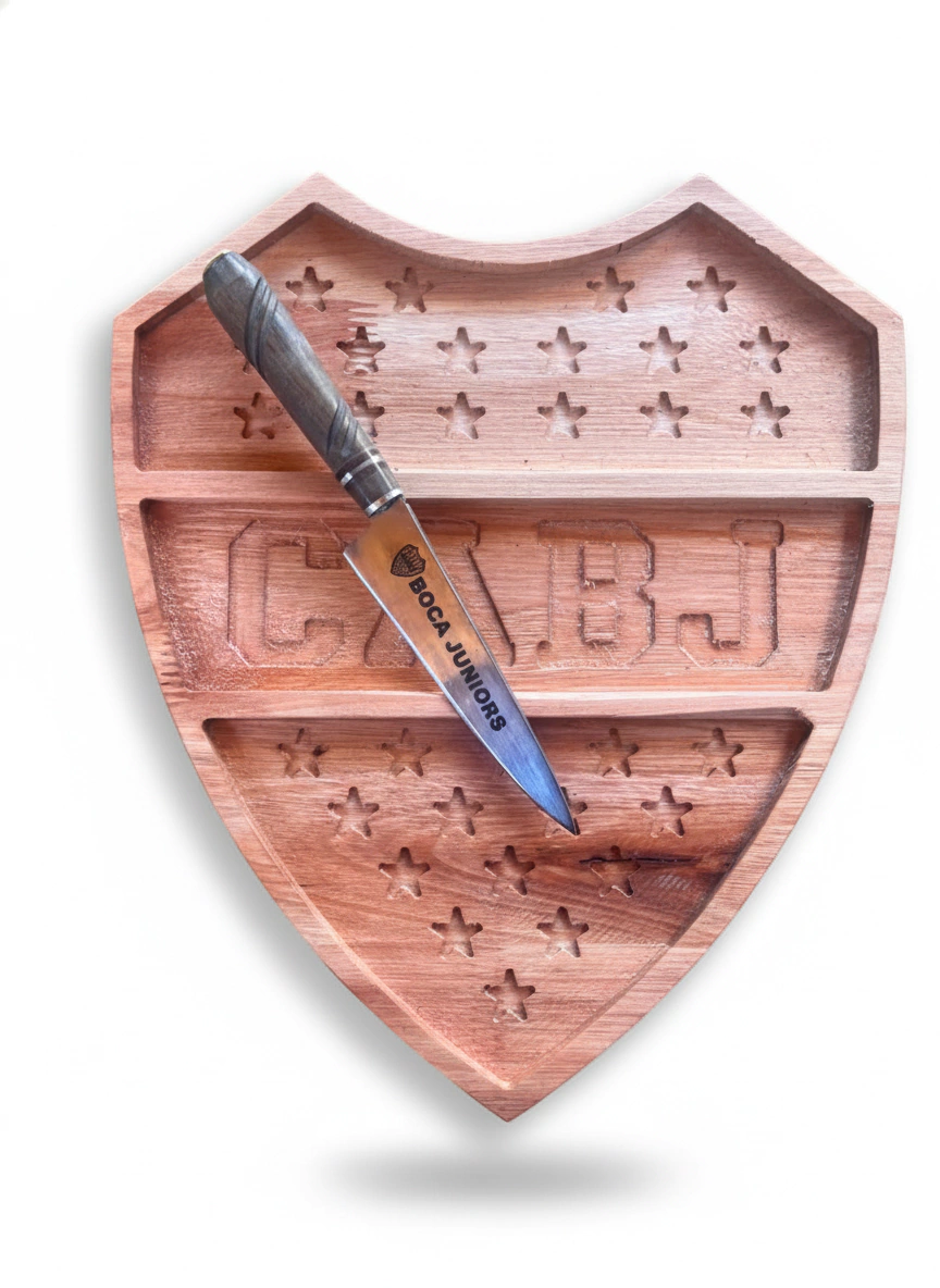 ¡Hacé tu pedido ahora y recibí tu tabla para picadas con cuchillo artesanal Boca Juniors en 24 horas!